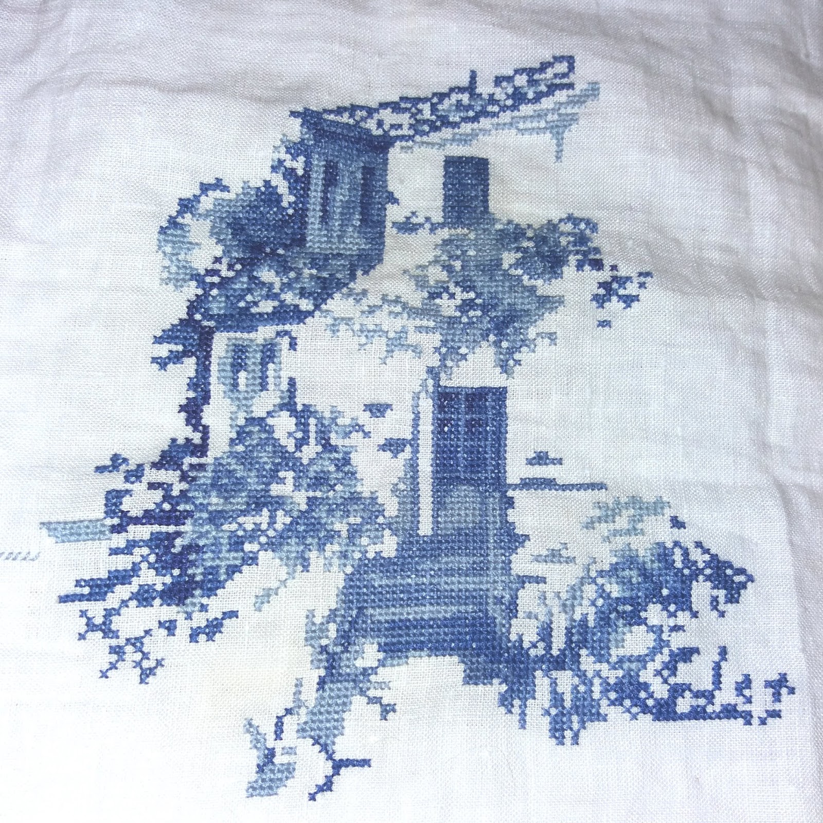 Наконец-то, я могу отчитаться о проделанной за месяц работе с удовольствием))). Мой синий пейзаж уже приобретает осмысленный вид. Хотя до финиша этого процесса еще далеко, но у меня появилась твердая уверенность в его завершении!